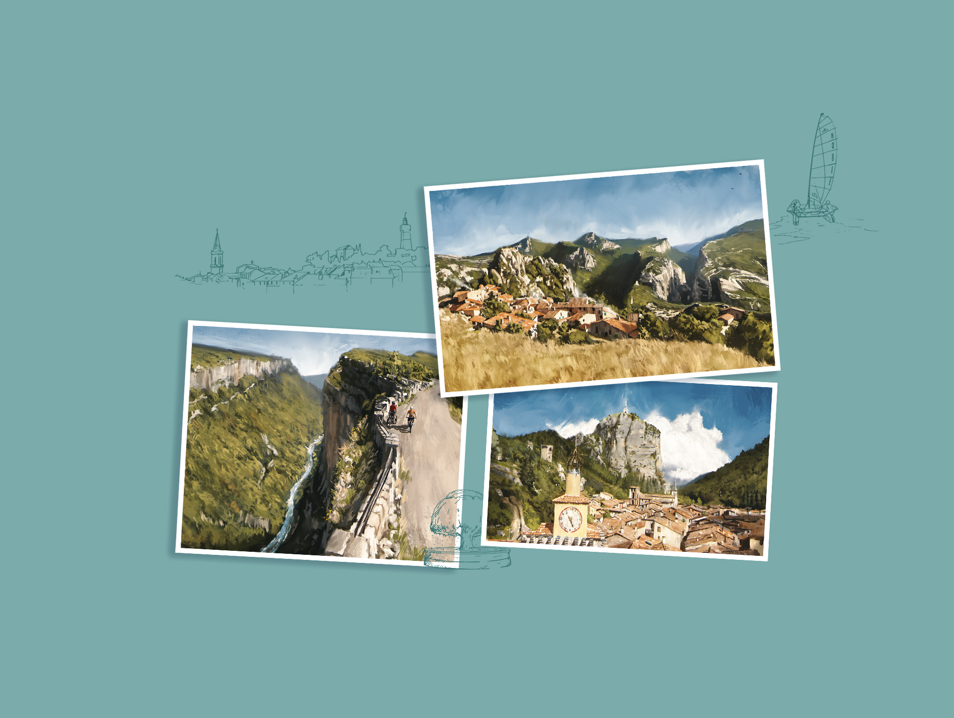 une cartographie claire, attractive et engageante, conçue comme un véritable outil d’accueil. Un support qui va au-delà de la simple localisation : grâce à des illustrations sensibles et dessinées, il fait ressentir les paysages, évoque l’atmosphère des lieux et invite à se projeter dans chaque itinéraire.